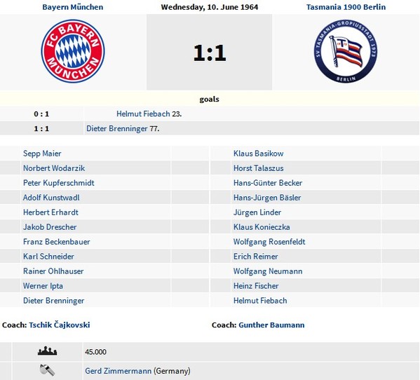 3. kolo | 18/08/1963 | FC Bayern | Borussia Fulda | 3 : 3 |