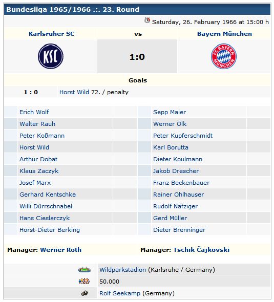 23. kolo | 26/02/1966 | Karlsruher SC | FC Bayern | |