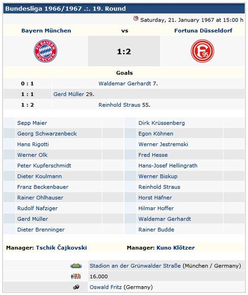 19. kolo | 21/01/1967 | FC Bayern | Fortuna Düsseldorf | |